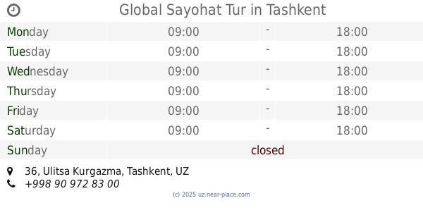 larger map & directionsLatitude: 41.3339548, Longitude: 69.2847376